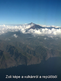 Szóval, se kanári, se lebarnulás, és még az óceánban sem fürödtünk! Ugyanis az időjárás nem volt kegyes (bár a luxemburgi átlagnál kb. százötvenszer jobb volt, és a panorámát sosem zavarta szürke felhő). És ugyanis az indulás előtti este tíz órakor Zoli végre véletlenül rálelt a megfelelő internetes oldalra, ahol az ember csúcsengedélyt kérhet magának, hogy megtehesse a Teide vulkán kráteréhez felvezető utolsó kétszáz métert is. A Pico del Teide 3718 méter magas, de e híres engedély nélkül legfeljebb 3500 méterig lehet eljutni, jó esetben teleferikkel !!!